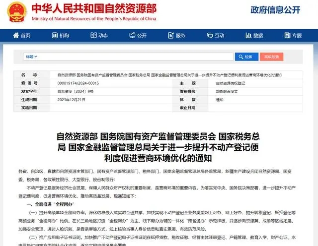 自然資源部等四部門:全面推進不動產登記“全程網(wǎng)辦”